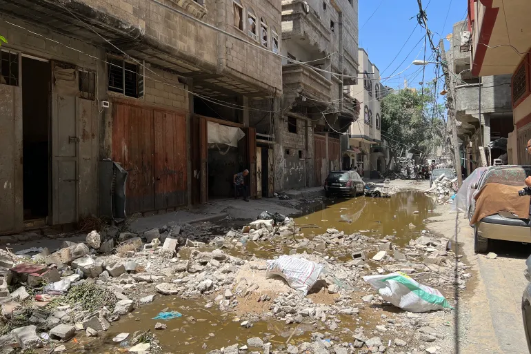 تدفق مياه الصرف الصحي في الشوارع جراء تدمير الاحتلال البنية التحتية