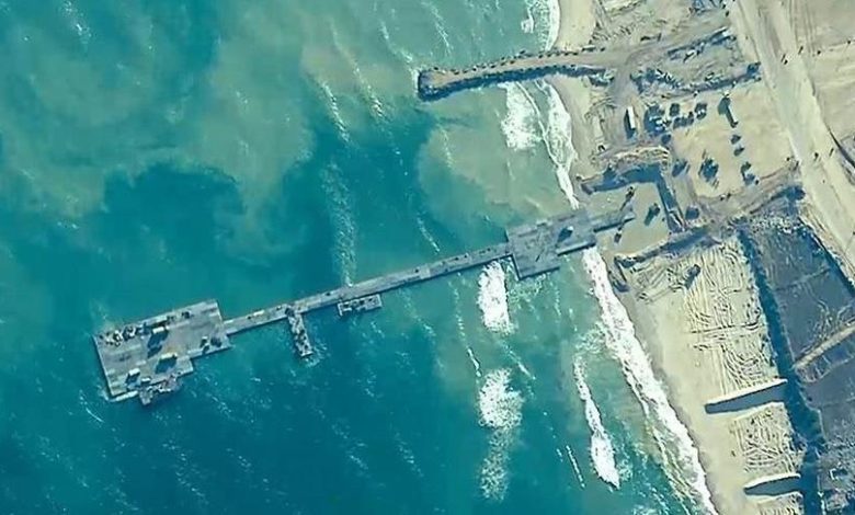 وافتتح الرصيف العائم في 17 مايو/أيار الماضي، لكن سرعان ما انهار بعد أسبوع من تشغيله جراء الأمواج، وانفصلت أجزاء منه ووصلت شاطئ مدينة أسدود.