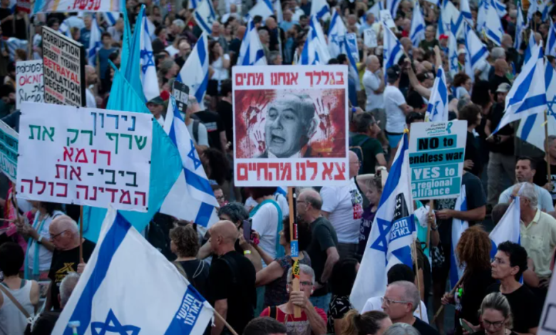 وتتصاعد الاحتجاجات الشعبية في إسرائيل مطالبة بإطلاق سراح المحتجزين في غزة، قبل أن تتسع مطالبها وصولا لإسقاط حكومة نتنياهو وحل الكنيست والذهاب إلى انتخابات مبكرة.