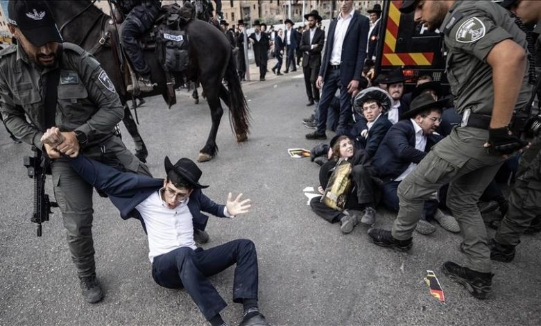 اندلعت اشتباكات بين الشرطة الإسرائيلية ويهود متشددين (حريديم)، مساء أمس الأحد، خلال مظاهرة شارك فيها عشرات الآلاف منهم بالقدس؛ رفضا لمحاولات تجنيدهم في الجيش، وفق إعلام عبري.