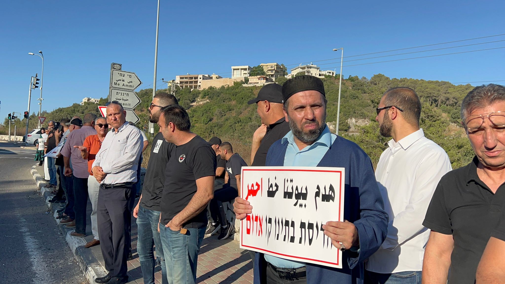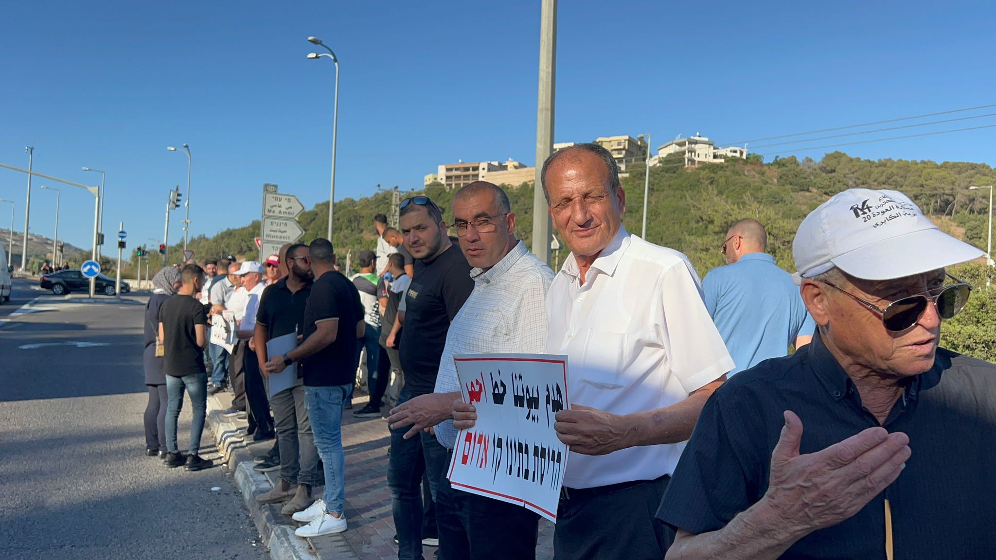 ورفع المشاركون في الوقفة لافتات مطالبة بوقف هدم المنازل في المجتمع العربي، والكف عن السياسات الرامية إلى تهجير واقتلاع المواطنين من أراضيهم من قبل المؤسسة الإسرائيلية.