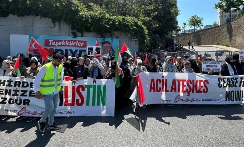 وحمل المتظاهرون لافتات مكتوبة بالتركية والإنكليزية والعربية وعليها عبارات من قبيل “التضامن لا يعرف حدود” و”فلسطين حرة” و”الولايات المتحدة القاتلة ارحلي من الشرق الأوسط”.