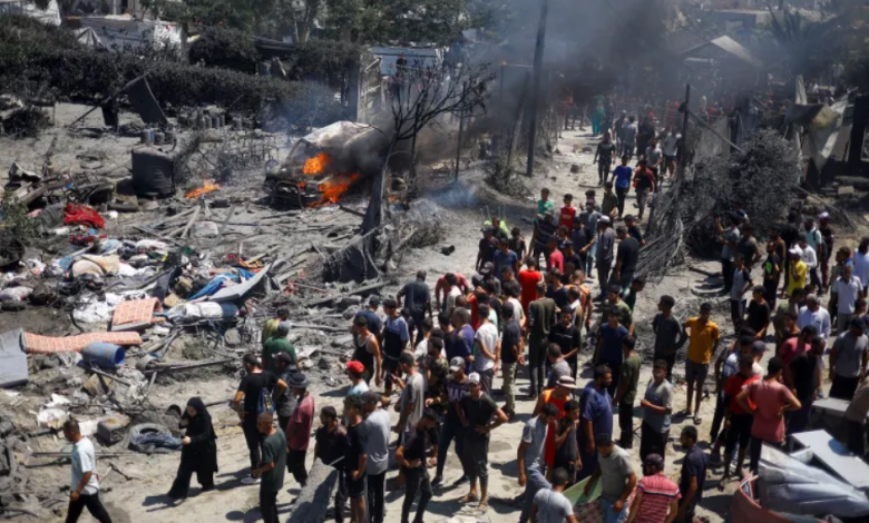 وأمس السبت، ضرب قصف جوي إسرائيلي خيام النازحين الفلسطينيين بمنطقة المواصي غربي مدينة خان يونس على نحو أدى إلى استشهاد 90 فلسطينيا وإصابة 300 آخرين، بينهم عشرات الأطفال والنساء، وفق إحصائية غير نهائية لوزارة الصحة الفلسطينية في غزة.