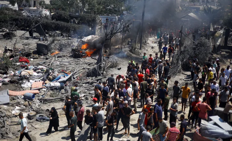 وأدى قصف جوي طال خيام النازحين الفلسطينيين بمنطقة المواصي غرب مدينة خان يونس، السبت، إلى استشهاد 90 فلسطينيا وإصابة 300 آخرين، بينهم العشرات من الأطفال والنساء، وفق إحصائية غير نهائية لوزارة الصحة الفلسطينية في غزة.