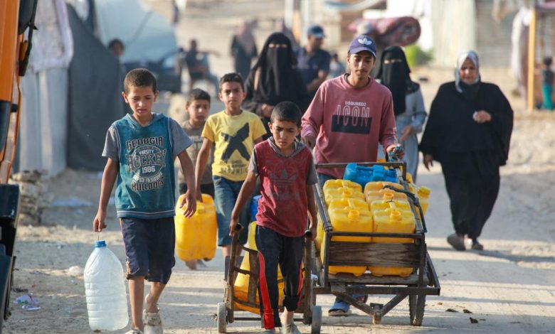 ويعاني النازحون الفلسطينيون في مناطق قطاع غزة المختلفة واحداً من أسوأ مصاعب الحرب في ظل ندرة المياه النظيفة وغلاء أسعار المتوفر منها، ويزداد هذا الوضع سوءاً مع ارتفاع درجات الحرارة والحاجة الملحة لكميات أكبر من المياه، خصوصاً مع احتياج الفلسطينيين في الخيام وأماكن النزوح للمياه بشكل مضاعف عن حاجتهم الطبيعية، لكنهم لا يحصلون إلا على الحد الأدنى وربما أقل من ذلك من المياه.