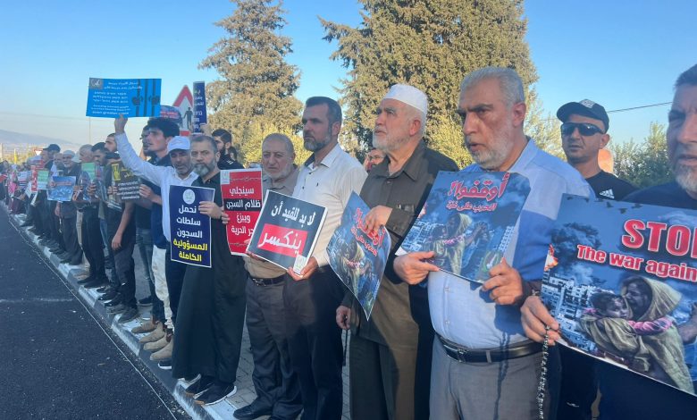 المئات ينتصرون لغزة والأسرى.. “الحريات” تنظّم وقفة أمام سجن مجيدو وسط شعارات تطالب بوقف الحرب ووقف عمليات التنكيل بالأسرى (شاهد)