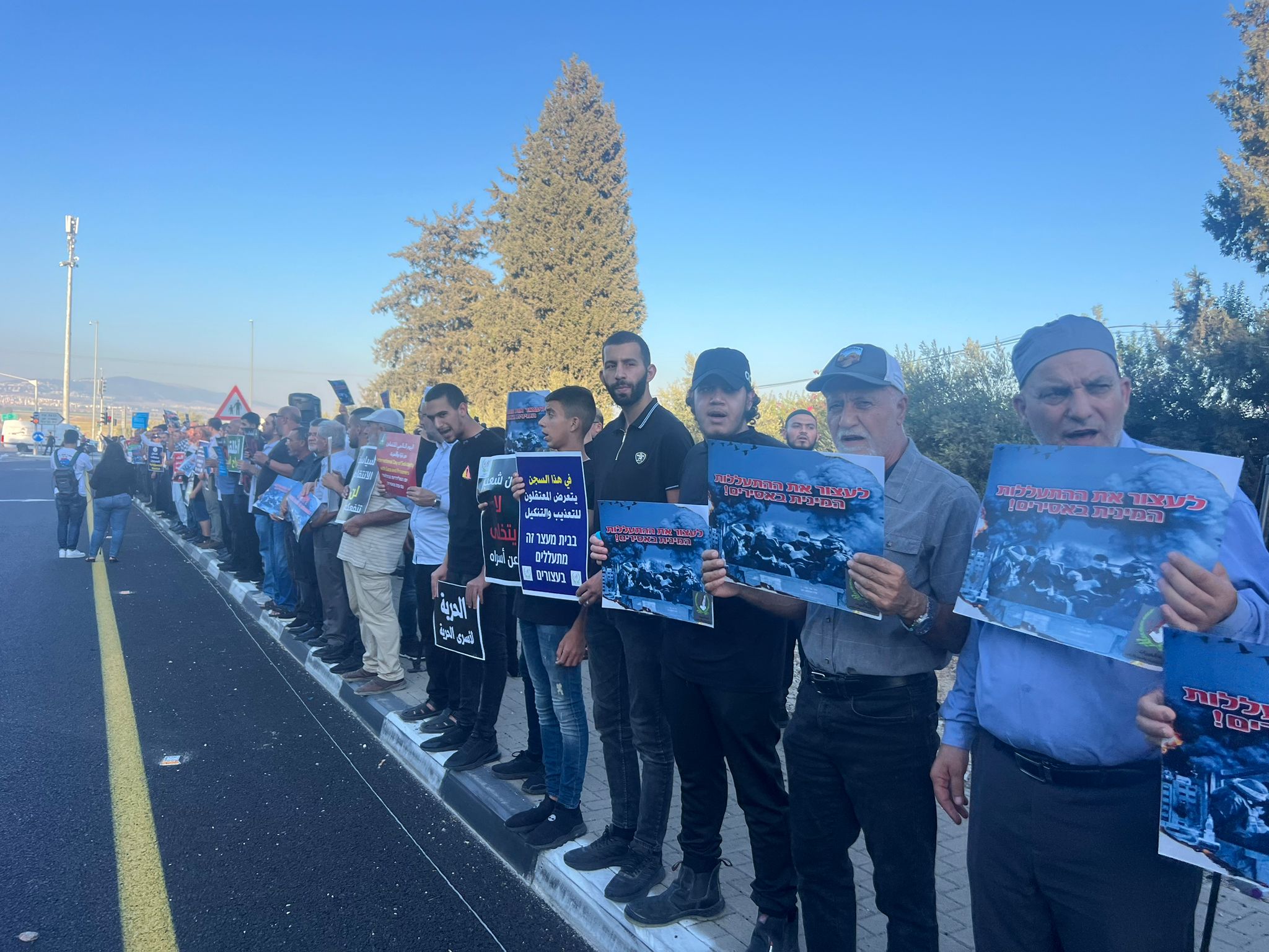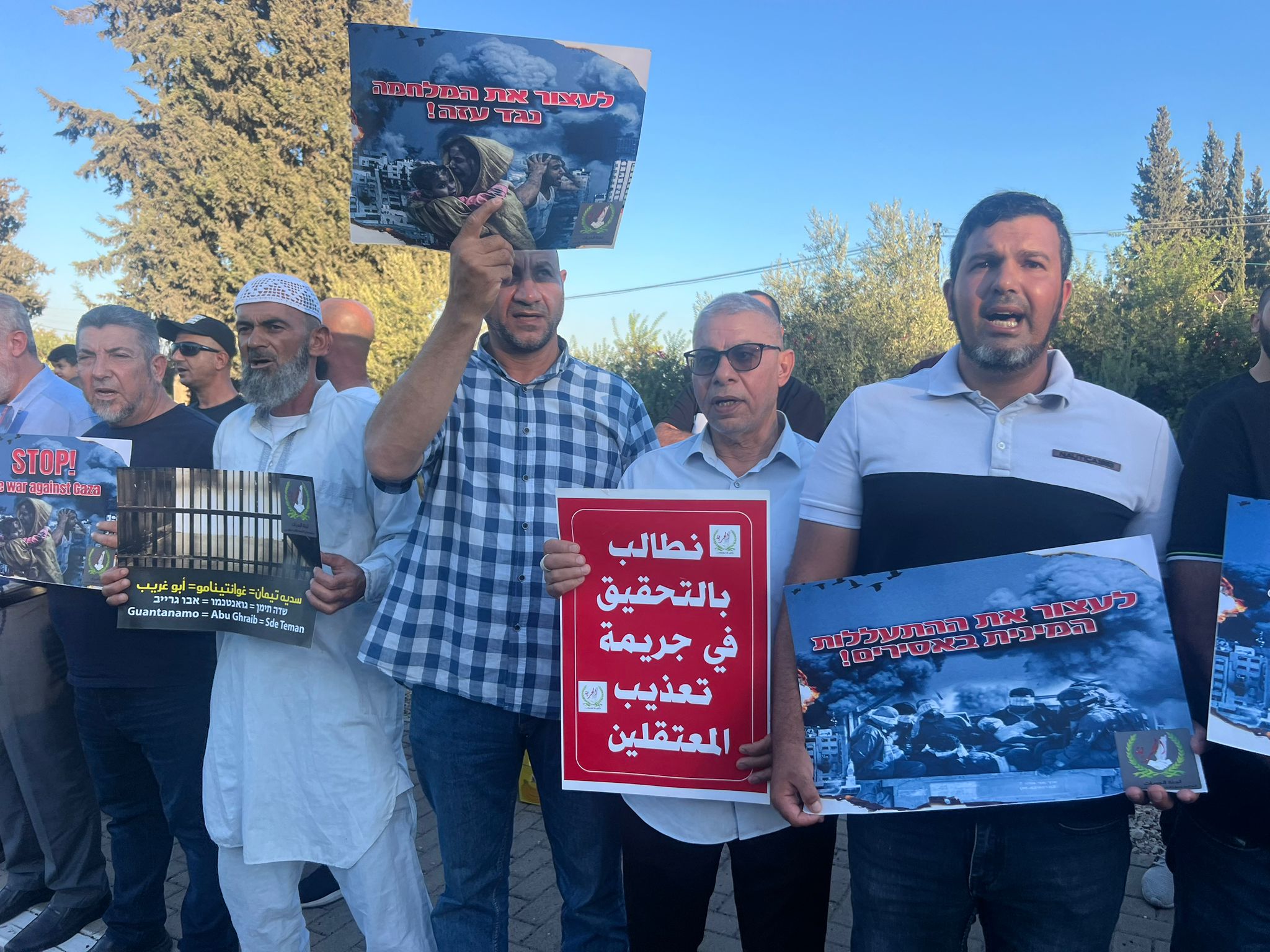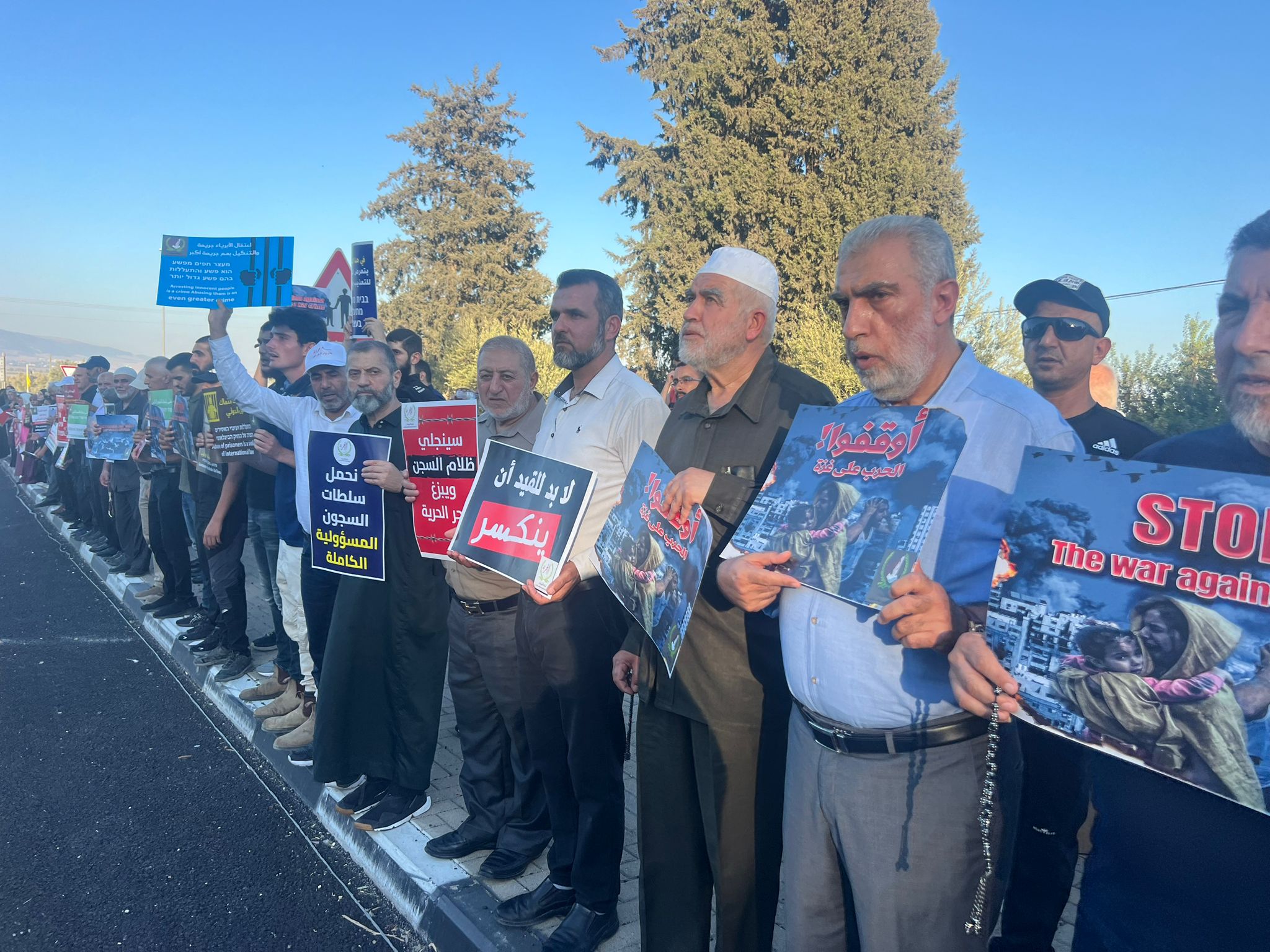 ورفع المتظاهرون لافتات تدعو إلى وقف التنكيل بحق الأسرى الفلسطينيين ولافتات تدعو إلى وقف الحرب المدمرة التي تشنها المؤسسة الإسرائيلية على قطاع غزة منذ السابع من تشرين الأول/ أكتوبر الماضي، ومن بين الشعارات: “متى يتحرك الضمير العالمي”، “تعذيب الأسرى انتهاك للقانون الدولي”، “نطالب في التحقيق بجريمة تعذيب المعتقلين”، “لا بد للقيد أن ينكسر”، “اعتقال الأبرياء جريمة والتنكيل بهم جريمة أكبر”، “أوفقوا الحرب على غزة”، “سياسة الانتقام لن تنفعكم”، “في هذا السجن يتعرض المعتقلون للتعذيب والتنكيل”.