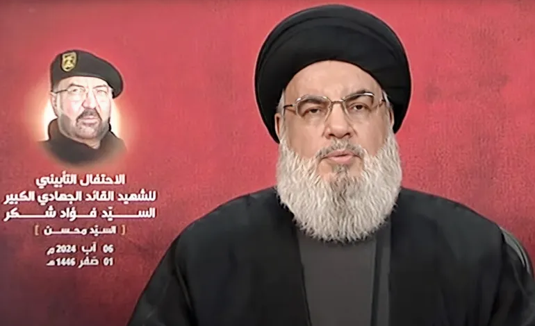 جاء ذلك في مستهل كلمة له في حفل تأبين القائد العسكري بالحزب فؤاد شكر، الذي اغتالته إسرائيل الذي اغتالته إسرائيل خلال غارة لها على ضاحية بيروت الجنوبية قبل أكثر من أسبوع.