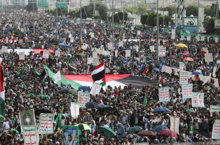 وفي اليمن، شهد ميدان السبعين في صنعاء مظاهرة لنصرة المسجد الأقصى المبارك والتنديد بالحرب الإسرائيلية على غزة. ورفع المتظاهرون شعارات تدعم صمود المقاومة الفلسطينية، مرددين شعارات تؤيد العمليات العسكرية التي يقوم بها الحوثيون بالبحر الأحمر.