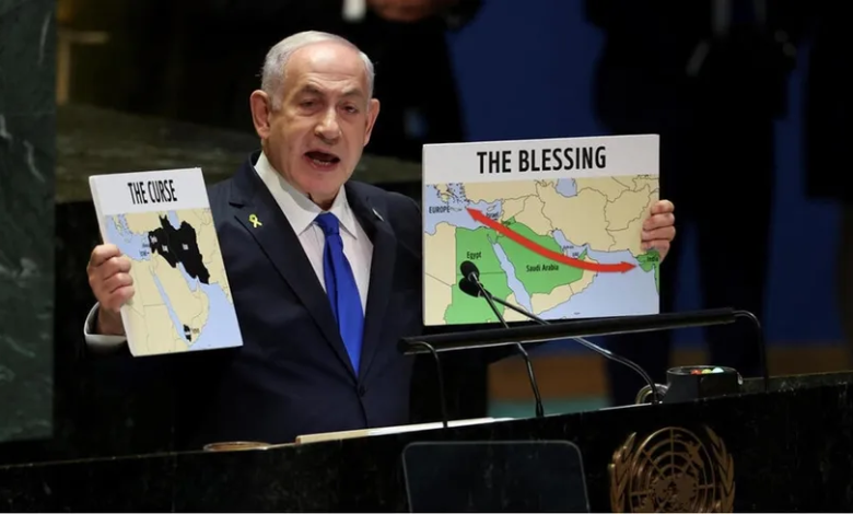 ولفت إلى أن الخطاب في حد ذاته كان مخيبا للآمال، وحتى محرجا إلى حد ما. فقد كان المتحدث بعيدا عن الموضوع، ومرتبكا في كثير من الأحيان، وكانت الوسائل البصرية لخرائط اللعنة والبركة تعيد تدوير الحيلة التي يستخدمها نتنياهو كثيرا. لقد كان تبني السلام مع المملكة العربية السعودية محرجا، نظرا لأن مقاعد وفدها كانت خالية بشكل واضح، وعندما نعرف ما هو ثمن السلام: الاعتراف بدولة فلسطينية. وكان الأمر كذلك أيضا عندما قال نتنياهو: سأفعل كل شيء لإعادة الرهائن إلى ديارهم لقد كان هذا هراء ضعيفا”.