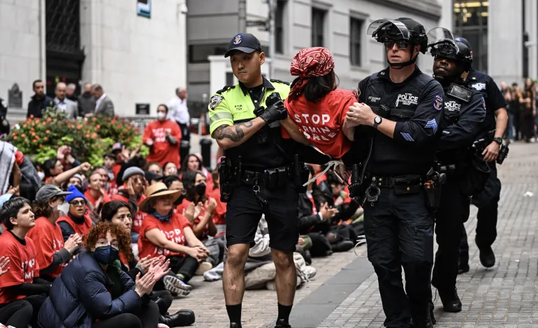 ألقت الشرطة الأميركية في نيويورك القبض على أكثر من 200 متظاهر مؤيد للفلسطينيين بعدما نظموا اعتصاما خارج بورصة نيويورك للأوراق المالية للمطالبة بإنهاء الدعم الأميركي لحرب إسرائيل في قطاع غزة.