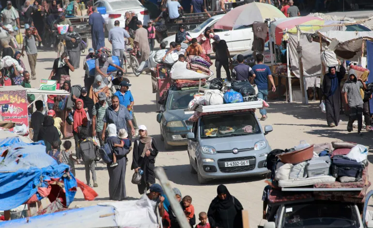 وسار الأطفال الذين كان بعضهم حفاة الأقدام جنبا إلى جنب مع أفراد عائلاتهم تاركين وراءهم منازلهم وأماكن نزوحهم ومتوجهين إلى المجهول بمدينة غزة.