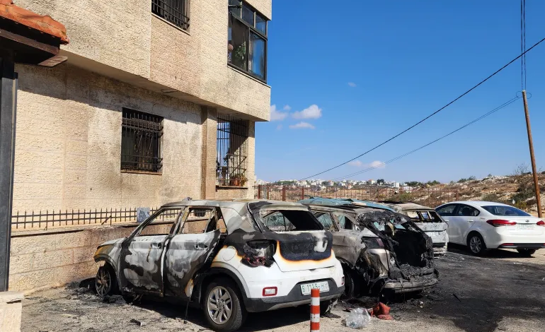 ونفذت مجموعة من المستوطنين، فجر الاثنين الماضي، هجوما على حي سكني في المنطقة الصناعية شرق مدينة البيرة شمال رام الله، وأضرموا النار في 18 مركبة فلسطينية كانت مركونة في مواقف بنايات الحي، مما تسبب في إحداث أضرار جسيمة لجدران البنايات السكنية ونوافذها.