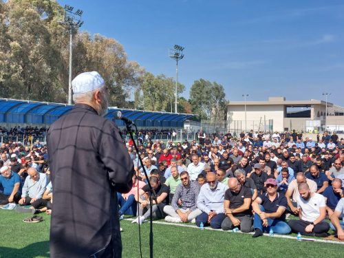 وقد سبقت المظاهرة، مشاركة الآلاف في صلاة الجمعة التي أُقيمت في الملعب البلدي في المدينة، احتجاجا على استمرار استفحال جرائم القتل.