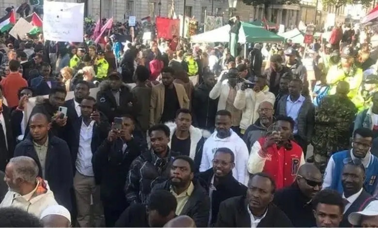 تظاهر المئات من السودانيين، أمام السفارة الإماراتية، في العاصمة البريطانية لندن؛ وذلك للاحتجاج ضد الدعم المقدم من أبو ظبي إلى قوات “الدعم السريع” في السودان.