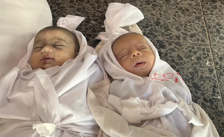 بعينين منتفختين ورأس يتأرجح مترنحا بين حقيقة ما ترى وبين ما ترفض تصديقه تجلس أريج أمام جثامين حمزة وعبد العزيز وليلى صغارها الثلاثة المكفنين الذين أودى بهم صاروخ واحد سقط على خيام نزوحهم في مدينة خان يونس جنوبي القطاع، فتفتتت على إثره أجسادهم وقلب أريج.
