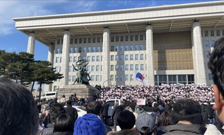 وتجمع آلاف المواطنين حول مبنى البرلمان في العاصمة سيول، للاحتجاج على فرض الأحكام العرفية، ليعلن رئيس البلاد بعد ساعات تراجعه عن خطوته.