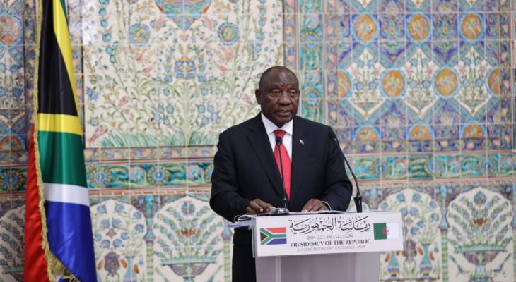 وأضاف “رامافوزا” خلال كلمته أمام البرلمان الجزائري ضمن زيارته الرسمية للجزائر، أمس الجمعة، “نحن نعلم ما يعنيه أن تكون مستعمرًا ومضطهدًا، ونقف بحزم مع الفلسطينيين في نضالهم من أجل الحرية”.