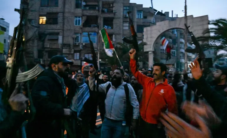 وأطلق مقاتلو المعارضة أعيرة نارية في الهواء للاحتفال، ومزق شبان صورا للرئيس السوري الذي انهارت سيطرته على البلاد مع انسحاب الجيش على مدى أسبوع.