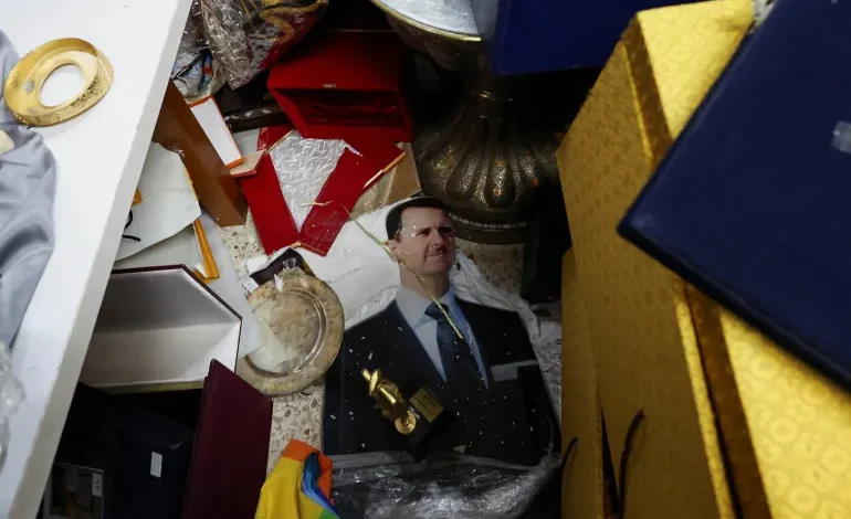 كذلك عثر على خريطة للجولان السوري، فضلا عن صور لبشار الأسد وزوجته أسماء، ووالده حافظ الأسد، مزقها السوريون في القصر الذي تحول لعلامة هزيمة النظام المخلوع، وفق وول ستريت جورنال.