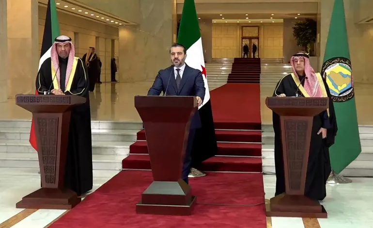 وقال وزير الخارجية السوري أسعد الشيباني، في مؤتمر صحفي، إنه سمع من الوفد الخليجي الزائر كلمات الدعم وهو ما أعطانا أملا في مستقبل جديد.