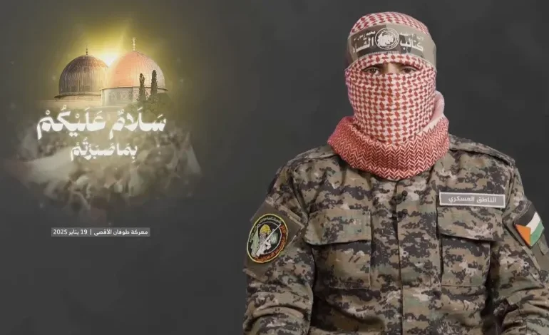 ألقى أبو عبيدة الناطق باسم كتائب القسام، الجناح العسكري لحركة المقاومة الإسلامية (حماس) اليوم الأحد كلمة مصورة عقب سريان وقف إطلاق النار في غزة.