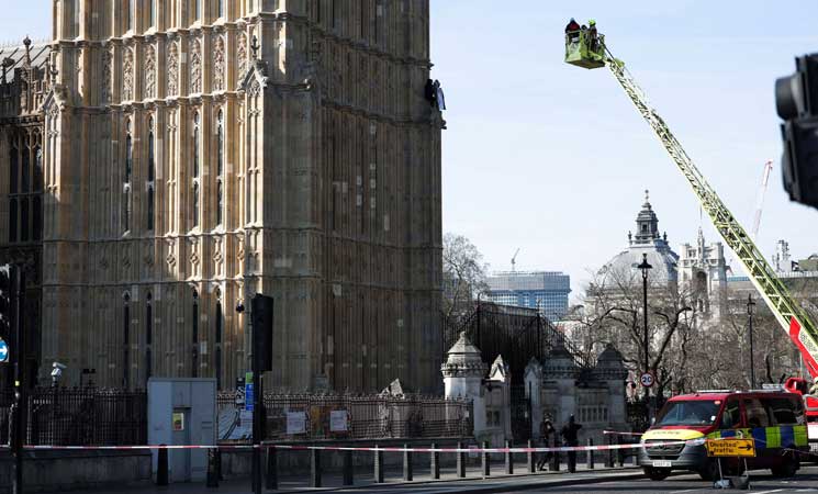 رجل يتسلق برج بيغ بن رافعا علم فلسطين- (صور وفيديوهات)