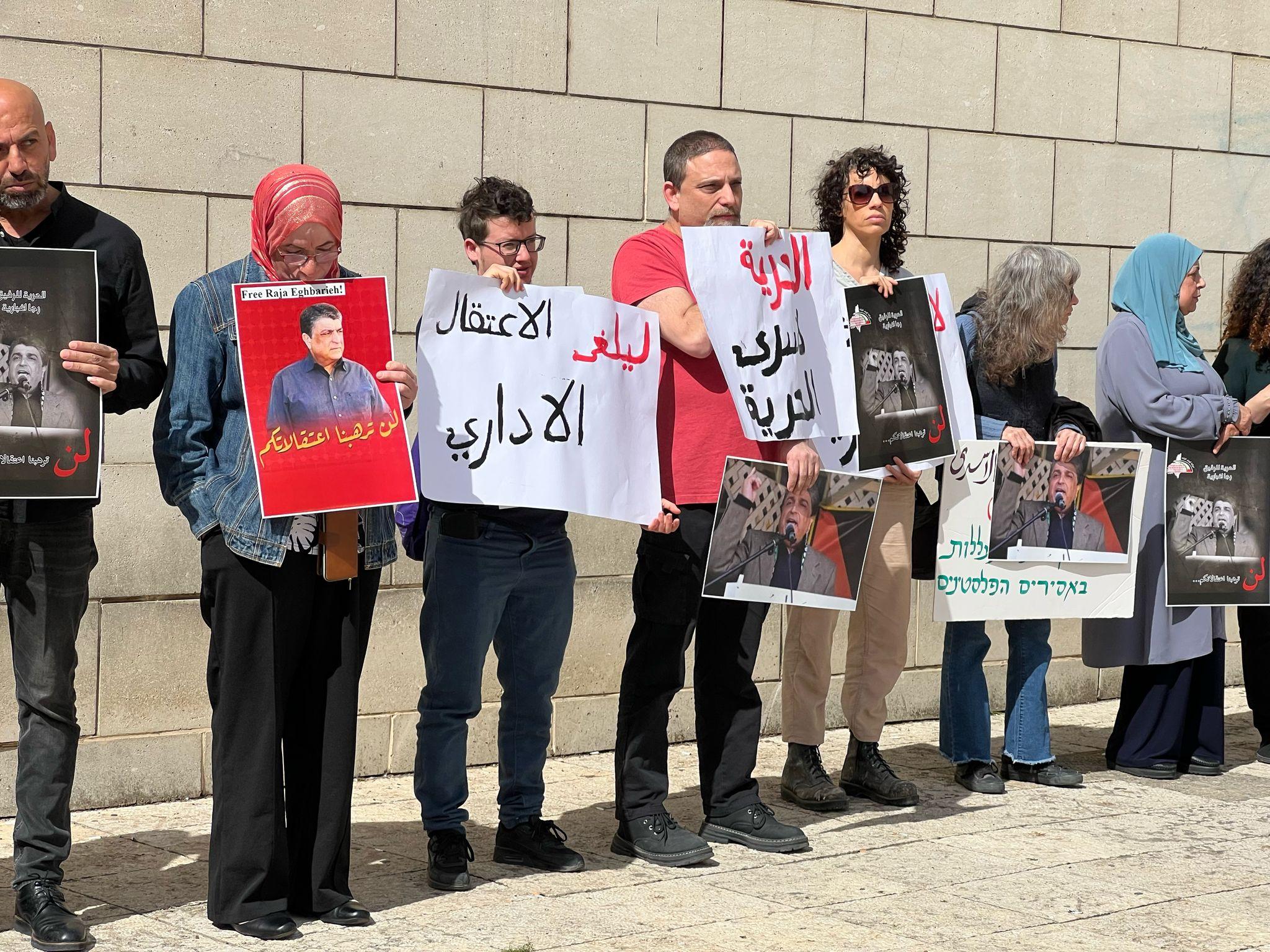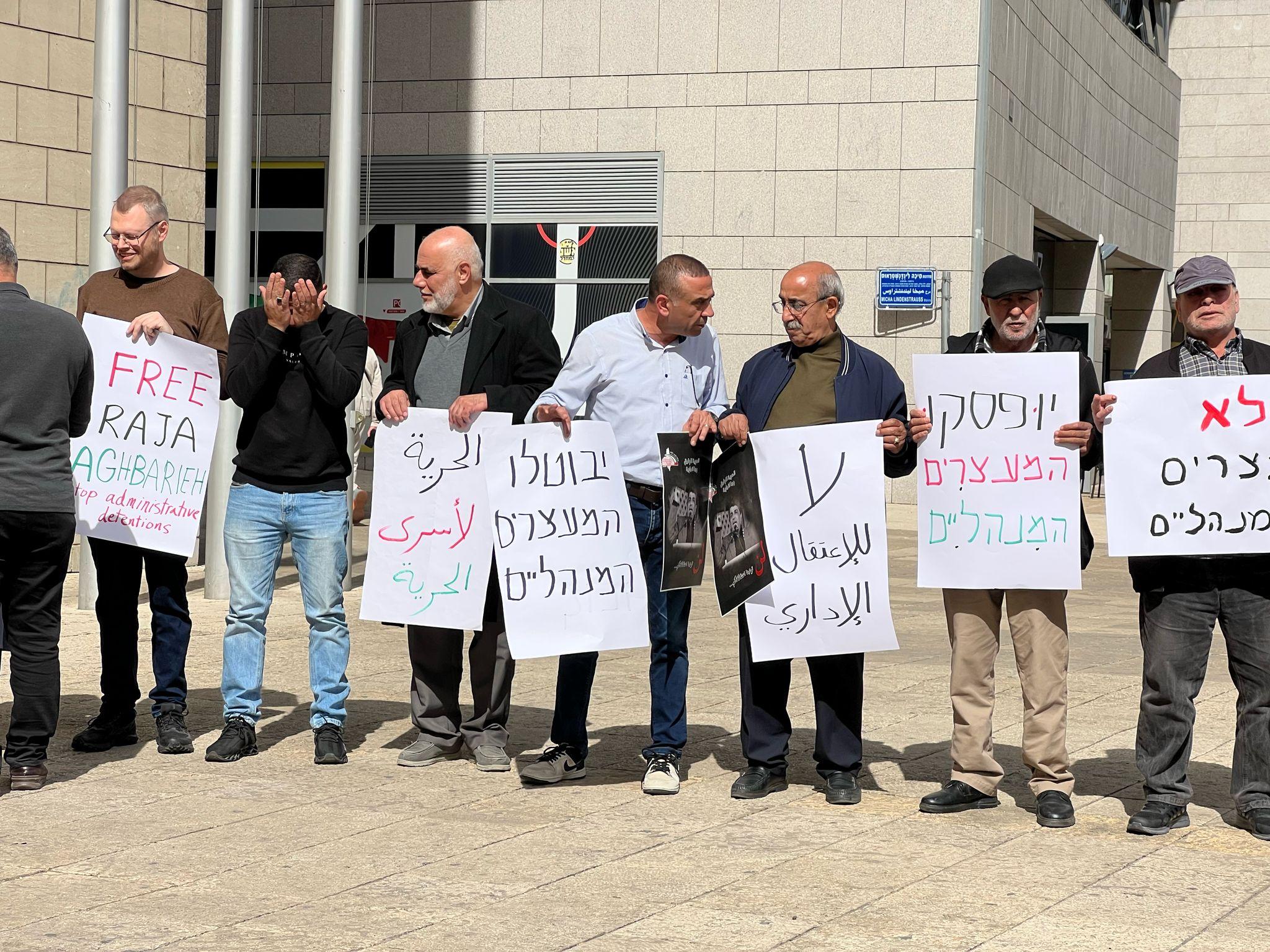 ورفع المشاركون في الوقفة لافتات كتبت عليها شعارات تطالب بإطلاق سراح إغبارية، بينها “أطلقوا سراح رجا إغبارية” و”الحرية لرجا إغبارية” و”لا للاعتقالات الإدارية” و”الاعتقالات الإدارية غير قانونية”.