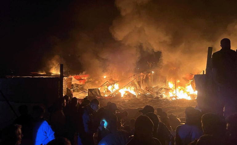 وقصفت مسيّرة إسرائيلية خياما تؤوي نازحين في مواصي خان يونس جنوب قطاع غزة، مما أدى إلى استشهاد 8 منهم 3 أطفال وامرأتان وإصابة آخرين.
