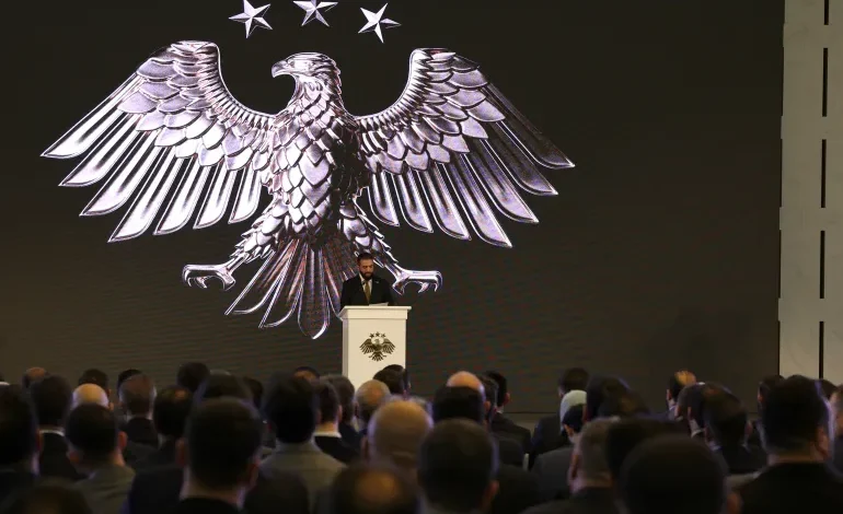 وأضاف أن احتفال اليوم عنوان لهوية سوريا وأبنائها بمرحلتها التاريخية الجديدة، هوية تستمد سماتها من هذا الطائر الجارح (العقاب الذهبي) وتنهل منه القوة والعزم والسرعة والاتقان والابتكار في الأداء.