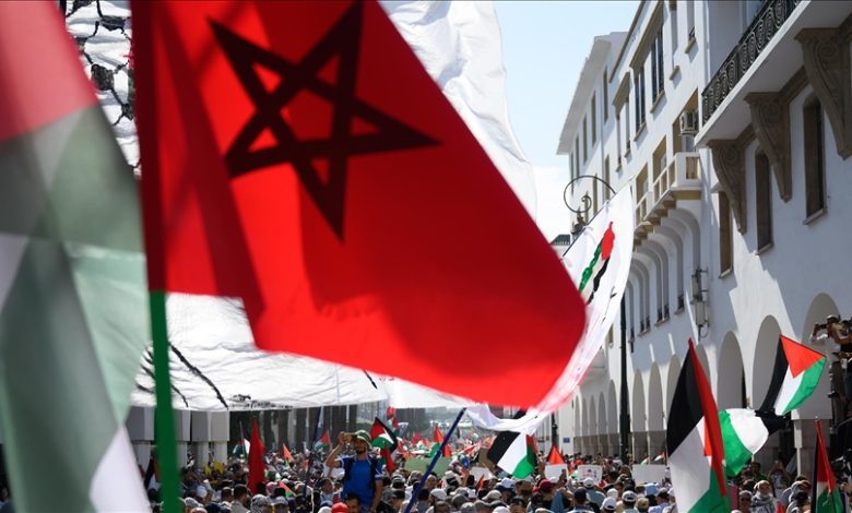 وتجمع المحتجون أمام مبنى البرلمان (شمال)، في العاصمة الرباط، بدعوة من “مجموعة العمل من أجل فلسطين” (غير حكومية).