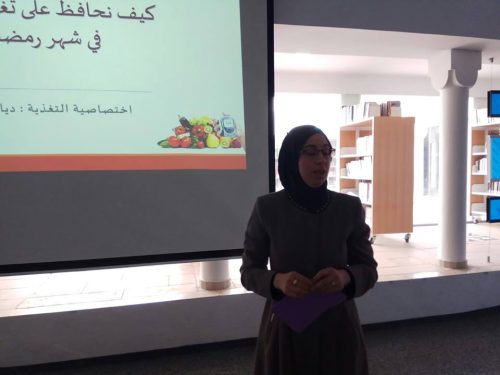 واختتم اليوم الدراسي بمحاضرة تحت عنوان: “كيف نحافظ على تغذية سليمة في رمضان؟”، قدمتها ديانا اغبارية – اختصاصية التغذية – تحدثت فيها عن التوصيات الغذائية للمحافظة على صيام آمن لمريض السكري بهدف تجنب المخاطر التي يتعرض لها مريض السكري الصائم، مع التشديد على أهمية استشارة الطاقم المعالج وضرورة التوجه لاختصاصية تغذية قبل رمضان للحصول على التوجيهات والإرشادات والمرافقة الفردية.