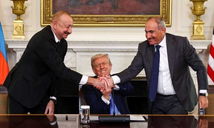 وقّع الرئيس الأذربيجاني إلهام علييف، ورئيس الوزراء الأرميني نيكول باشينيان، الجمعة، إعلانا مشتركا عقب القمة الثلاثية التي استضافها الرئيس الأمريكي دونالد ترامب في البيت الأبيض.