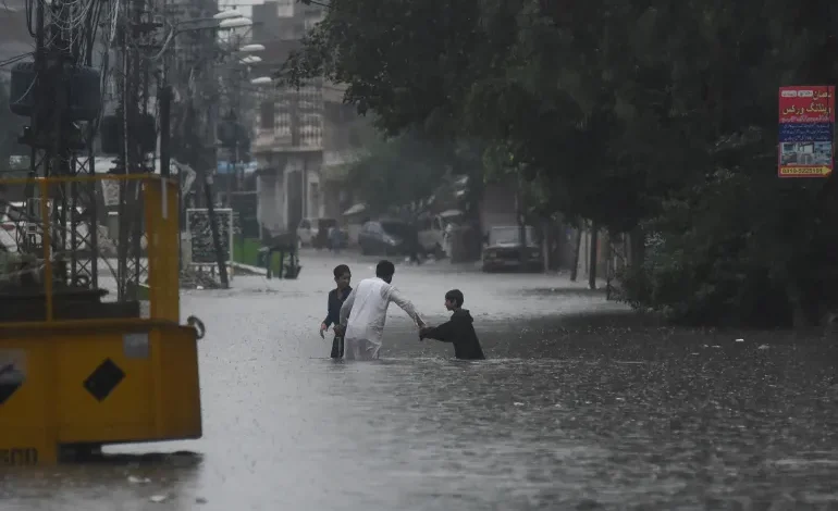 وأدت الأمطار الغزيرة التي تضرب باكستان منذ بداية فترة الأمطار الموسمية الصيفية والتي وصفتها السلطات بأنها “غير عادية”، إلى مقتل أكثر من 320 شخصا نصفهم تقريبا من الأطفال. وكانت معظم الوفيات ناجمة عن انهيار منازل وفيضانات مفاجئة وصعقات كهربائية.