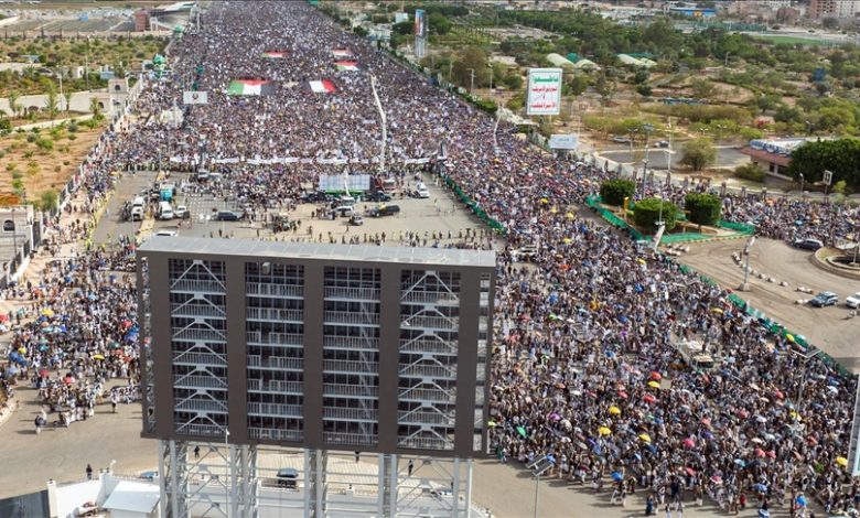 وحسب إعلام يمني، نظمت المظاهرة جماعة الحوثي تحت شعار “ثابتون مع غزة رغم العدوان الصهيوني”.