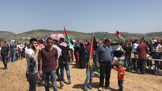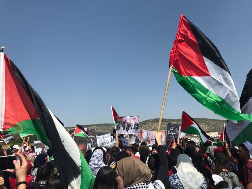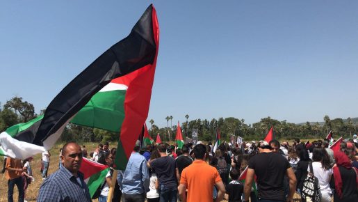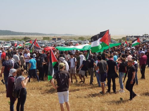 كما ورفعوا شعارات في مسيرة العودة: يوم استقلالهم، يوم نكبتنا، ولا عودة عن حق العودة ونعم لعودة المهجرين واللاجئين إلى ديارهم”.
