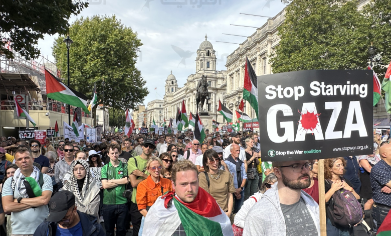 وفي كلمته خلال المظاهرة، أوضح المصور الصحفي الفلسطيني عبد الرحمن الكحلوت، أنه رأى الدعم لغزة حينما كان داخل القطاع، وأنه جاء إلى أوروبا ليشرح للرأي العام ما يحدث في غزة بشكل أفضل.