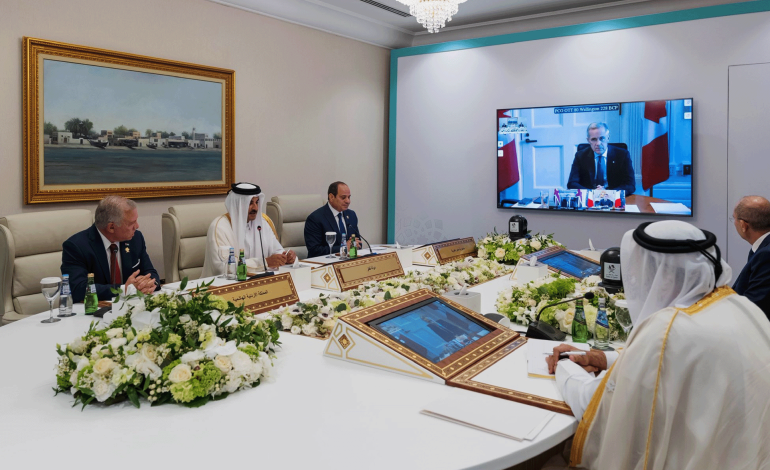 عقد قادة قطر ومصر والأردن وفرنسا وبريطانيا وكندا مباحثات، الاثنين، بالتزامن مع القمة العربية الإسلامية التي استضافتها العاصمة القطرية الدوحة.