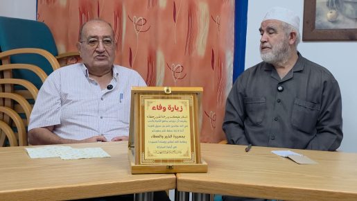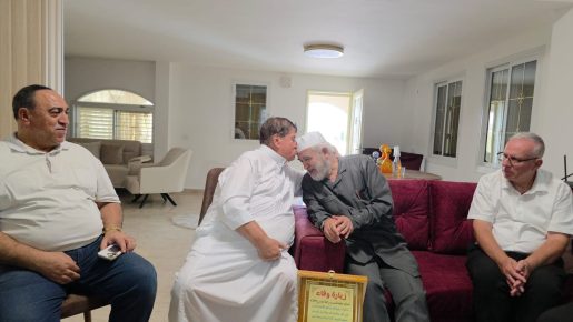 واختُتمت جولات الوفاء بزيارة بيت البروفيسور محمود مصالحة (أبو خليل)، أحد الشخصيات الأكاديمية والتربوية البارزة، وصاحب الإسهامات الرائدة في التعليم العالي وخدمة المجتمع. وأشاد الشيخ رائد في كلمته بمسيرته العلمية والإنسانية، فيما عبّر الدكتور محمود عن امتنانه لهذه الزيارة التي تعكس قيم الوفاء المتأصلة في أبناء الوطن، وتسلّم درعًا تكريميًا ومؤلفًا من الشيخ.