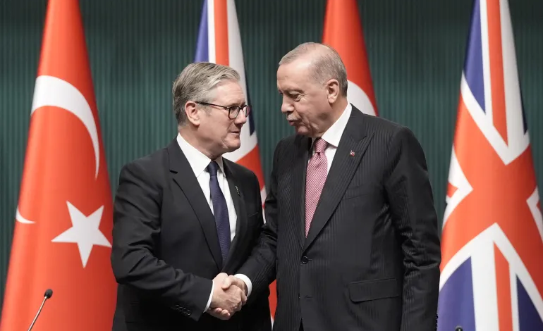 ترأس الرئيس التركي رجب طيب أردوغان ورئيس الوزراء البريطاني كير ستارمر، اليوم الاثنين، اجتماعا موسعا بين مسؤولين من البلدين، في أنقرة، حيث تم توقيع بعض الاتفاقيات والتأكيد على ضرورة الحفاظ على اتفاق وقف إطلاق النار بقطاع غزة.