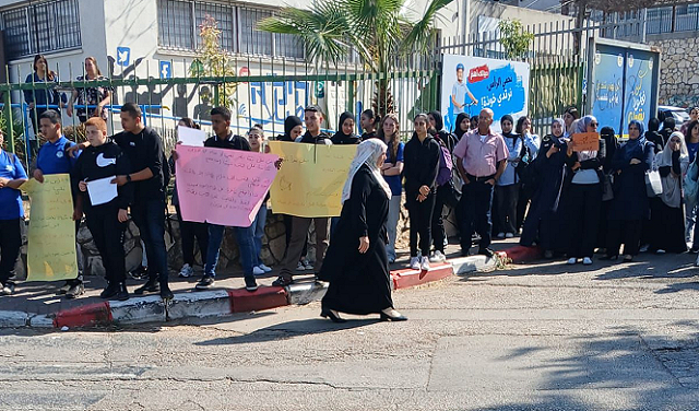 ونظمت الوقفة على مدخل المدرسة، من قبل طاقم المدرسة وطلابها احتجاجًا على الجريمة، وتعبيرًا عن الغضب إزاء تصاعد العنف والجريمة في المجتمع العربي.