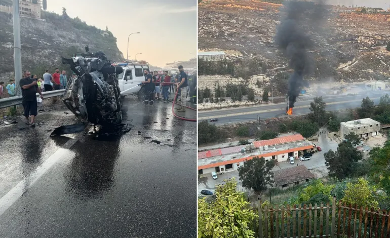 وقال مصدر أمني لبناني إن المسيرة أطلقت 3 صواريخ باتجاه السيارة مما أدى إلى احتراقها بالكامل ووقوع إصابات.