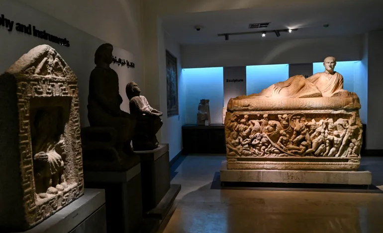 ومن ضمن القطع المعروضة أسرّة جنائزية ولوحات جدارية نادرة وتماثيل حجرية.