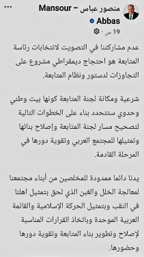 وحصل هذا التلاعب لاحقًا بتغيير دستور الحركة الإسلامية لضمان استمرار منصور عباس في رئاسة القائمة لأن الدستور ينصّ على غير ذلك (اقرأوا ما كتبه معاذ نجل الشيخ عبد الله نمر درويش رحمه الله في تعقيبه على بيان منصور عباس يوم أمس السبت).