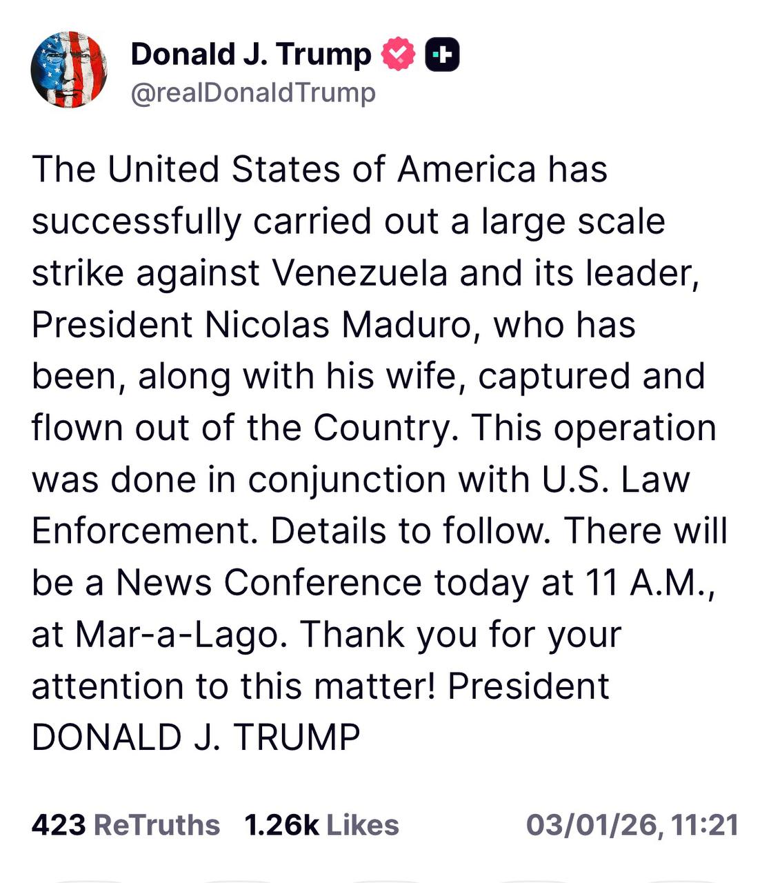 الرئيسية/ضربات أميركية على فنزويلا: ترامب يعلن اعتقال الرئيس الفنزويلي نيكولاس مادورو وزوجته/WhatsApp Image 2026-01-03 at 01.51.19 WhatsApp Image 2026-01-03 at 01.51.19
