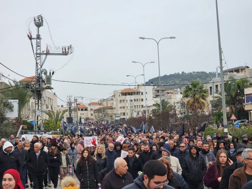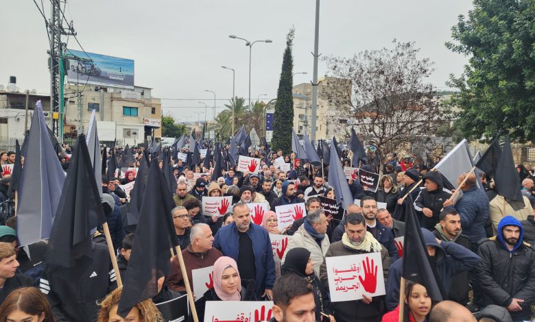 آلاف المتظاهرين يحتجون في سخنين على تفشي العنف والجريمة في المجتمع العربي