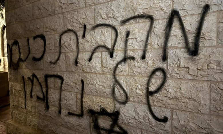 مستوطنون يحرقون مدخل مسجد في مادما ويخطّون شعارات عنصرية على جدرانه