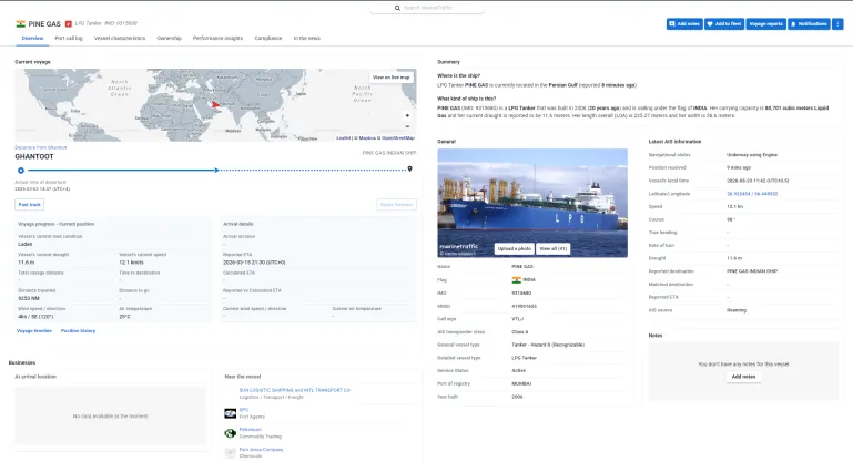 وبحسب الرصد والتحليل الذي أجرته وحدة المصادر المفتوحة بشبكة قناة الجزيرة القطرية، شملت السفن ناقلتي الغاز المسال الهنديتين “باين غاز” و”جاج فاسانت “، إلى جانب ناقلة النفط “برايت غولد” التي ترفع علم بنما وتديرها شركة صينية.