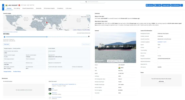 وكانت رويترز قد أفادت في 20 مارس/آذار بأن الناقلتين الهنديتين باين غاز وجاج فاسانت تستعدان لعبور مضيق هرمز بعد توقف مؤقت.
