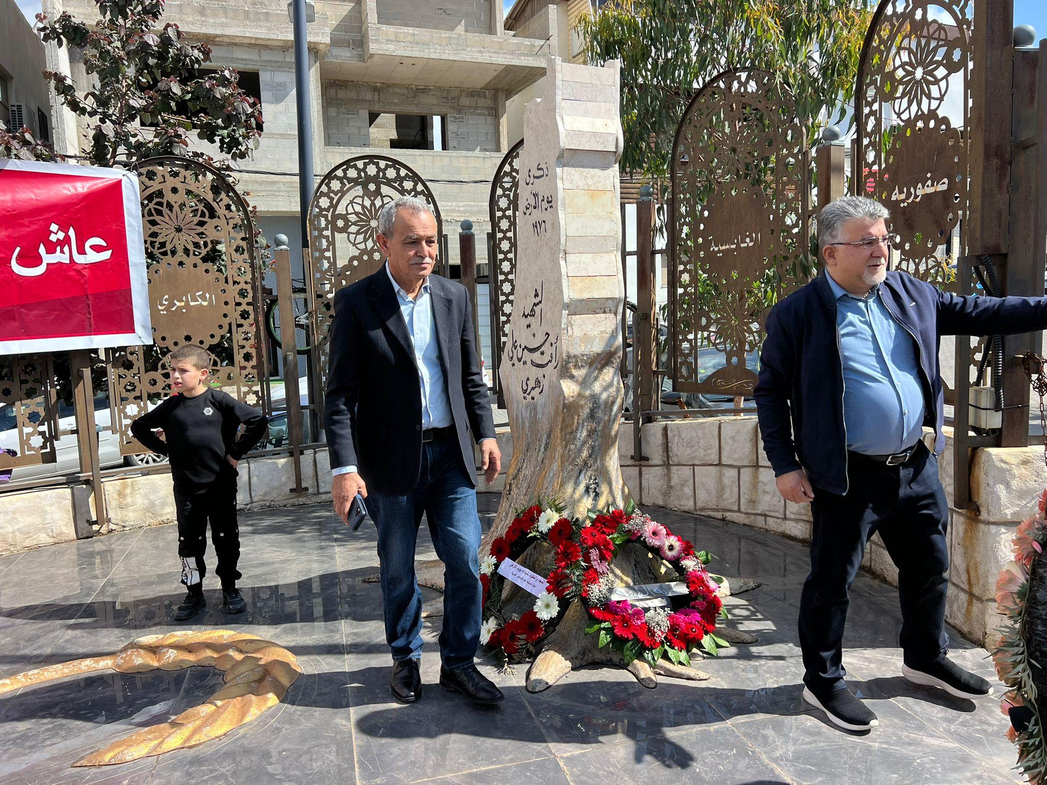 وخلال إحياء الذكرى، وضع المشاركون أكاليل الزهور على نصب الشهيد رأفت حسين علي الزهيري، ابن مخيم نور شمس، الذي ارتقى خلال أحداث يوم الأرض في الطيبة برصاص القوات الإسرائيلية.